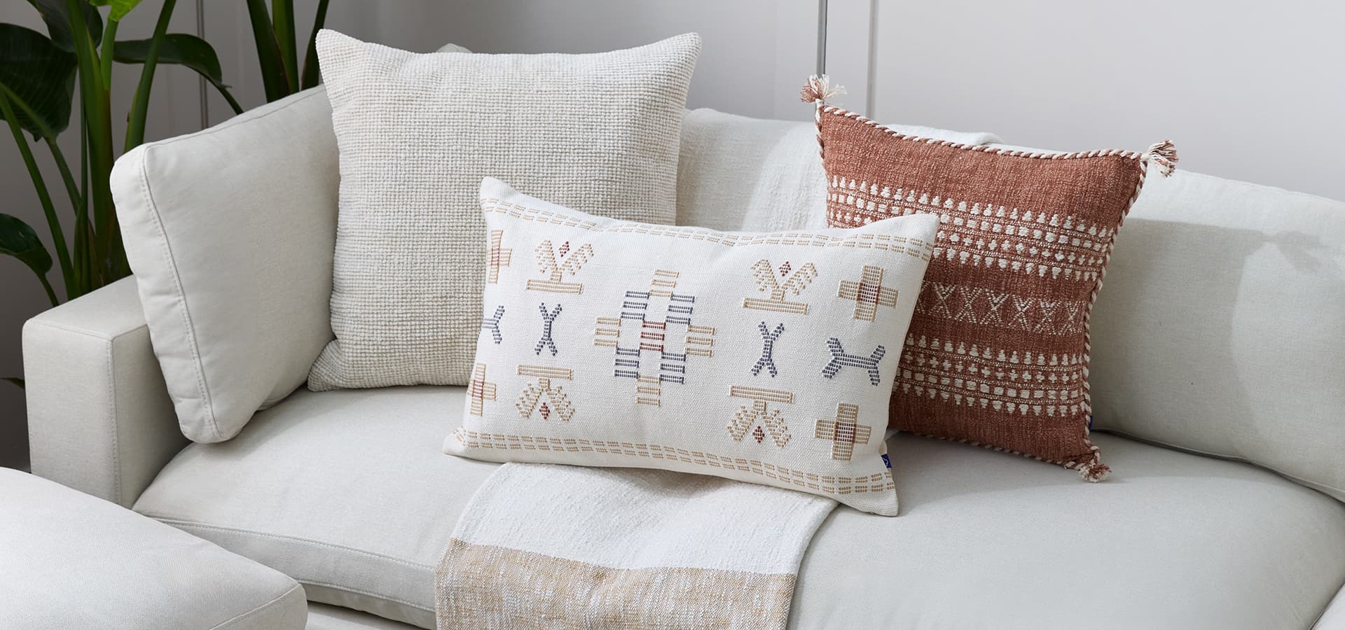 FA: The new collection was inspired by handcrafted textiles from around the globe. We want our products to exhibit a rich textural quality, so that each style looks great on its own or grouped as a set. The patterns are all designed to complement one another, and we have colorways that coordinate with all of our sofas so everyone can find their perfect pairing, regardless of whether they like deep blues, warm terracotta and dusty rose, a refreshing sage green, or a timeless neutral.