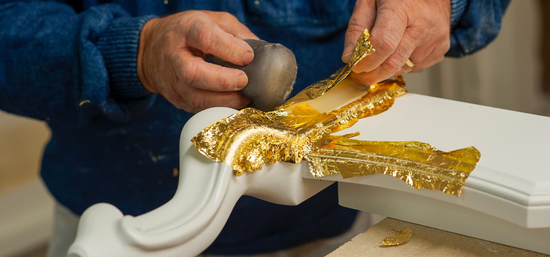 - Apply the metal leaf onto the adhesive area with your hands.